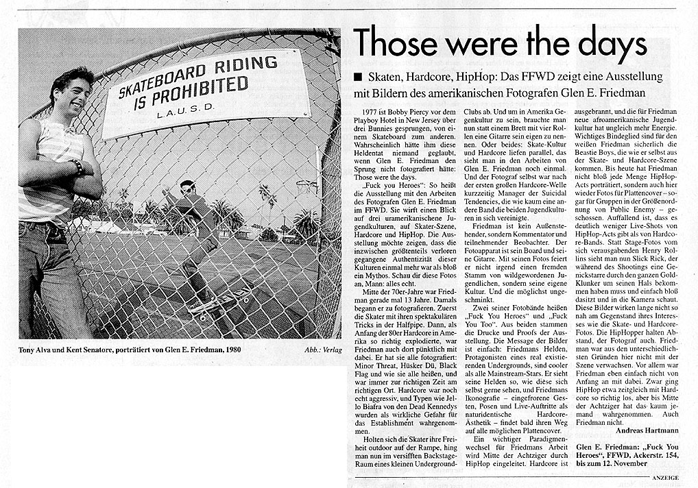 Skaten, Hardcore, HipHop: Das FFWD zeigt eine Ausstellung Mit Bildern des amerikanischen Fotografen Glen E. Friedman
